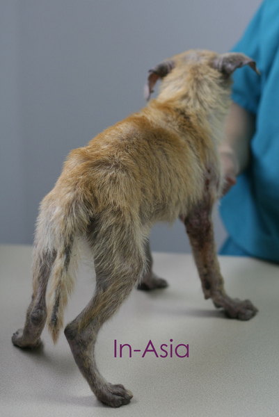 疥癬蟲(Sarcoptic Mango; Canine Scabies)感染得很嚴重(同期的沙威龍已經6.1kg了)