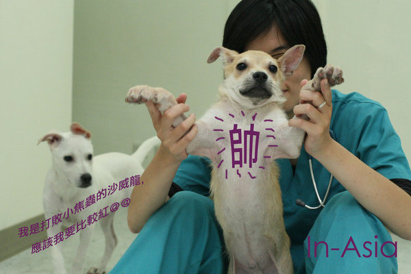 (因為疥癬有高度傳染力 所以可以跟沙威龍合照 但還不能一起玩耍!)