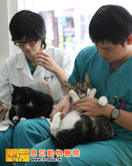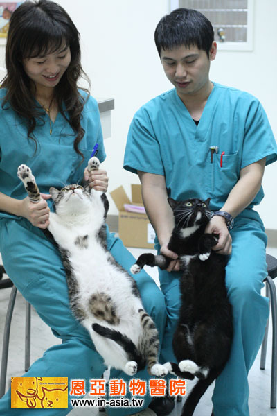 脾氣好到不行 看看兩位蔡 醫師 (不論男女) 都能輕鬆伸展牠的四肢唷