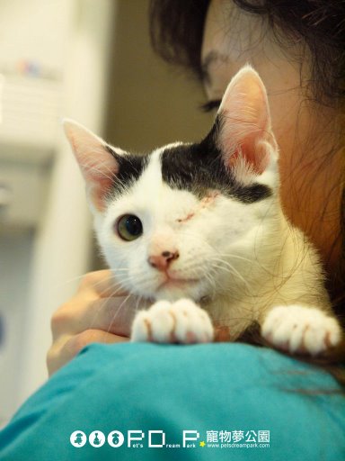 牠的左眼因疱疹病毒感染而眼球萎縮 失去視力