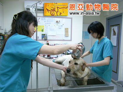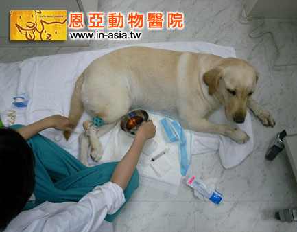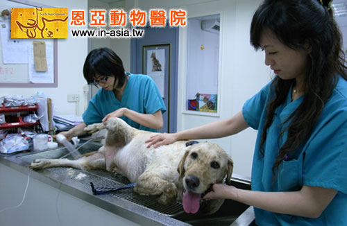 除了繼續沖水降溫 也趕緊幫牠上軟針打點滴