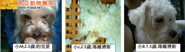 小M為2.5歲約克夏,臉部在雙側眼下方有不癒合的傷口,